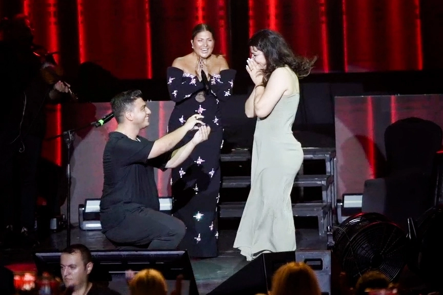 Konserin en duygusal anı, Yusuf Ali’nin solo bağlama çaldığı ve Sibel Can’ın “Ben seninim sen de benim” türküsünü seslendirdiği bölümde yaşandı. Usta müzisyen, türkünün sözlerini sevgilisine ithaf ederek sahneden evlilik teklifinde bulundu. Figen’in “Evet” yanıtıyla birlikte hem sahneden hem de izleyicilerden yoğun alkış yükseldi.